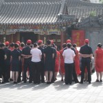 Dunhuang, China: Hotel and restaurant staff gather for morning meeting.